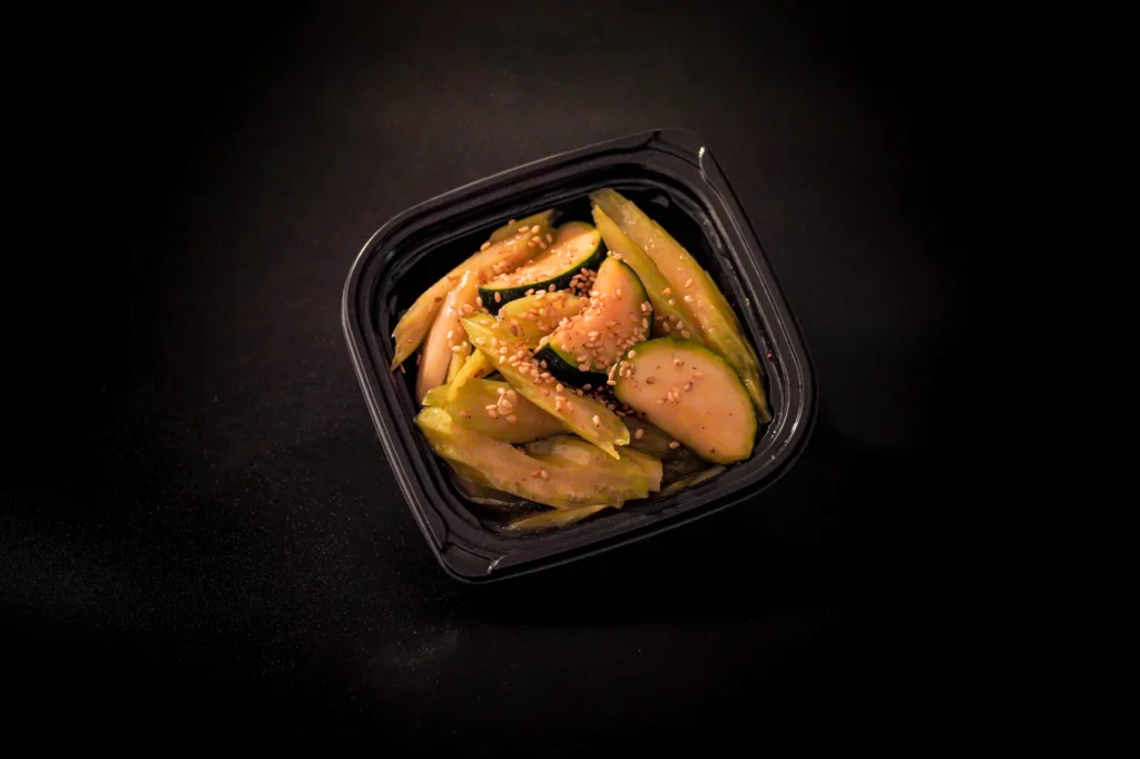 Celery and Zucchini is a simple side dish featuring lightly seasoned slices of celery and zucchini. The vegetables are fresh and crisp, offering a mild flavor that complements any meal. Seasoned with salt and perhaps a hint of pepper, it is a healthy and low calorie option. Perfect for adding a vegetable portion to your plate.